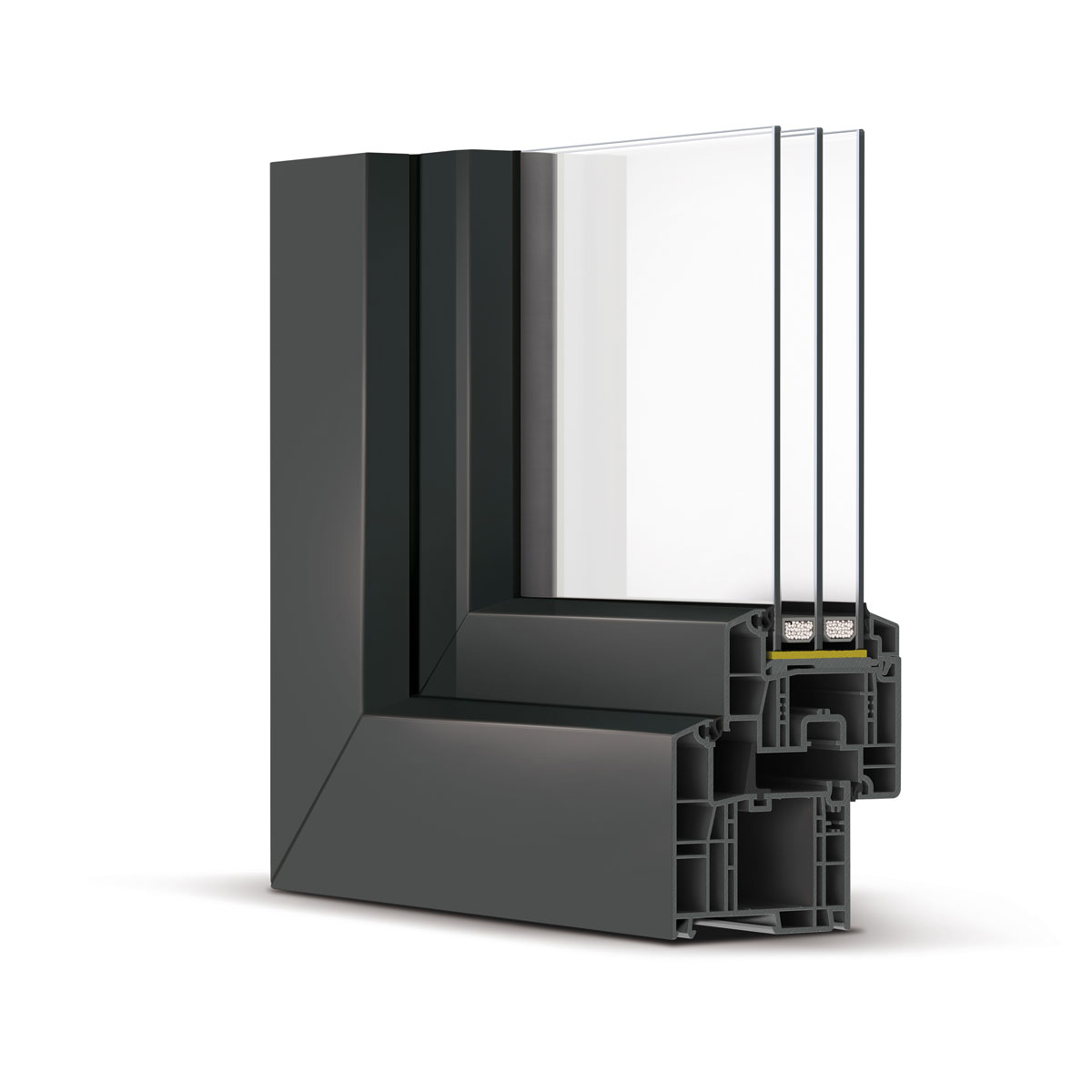 Die stabilisierenden Glasfaseranteile in den Flügelprofilen stemmen schwere Schallschutz und Sicherheitsverglasungen mit Leichtigkeit und ermöglichen gleichzeitig besonders hohe Energieeffizienz.